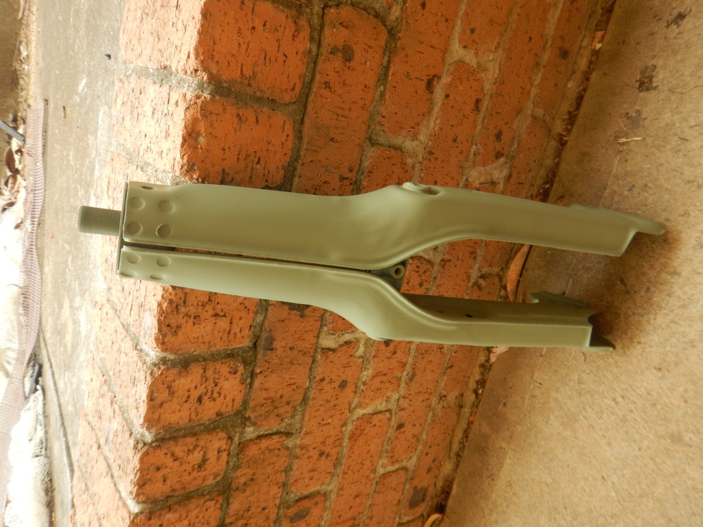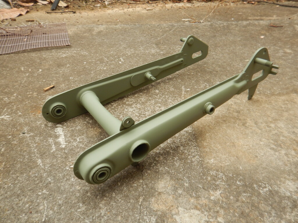 The entire frame is painted now, along with the front forks and rear swingarm and fuel tank, so its ready to go back together.