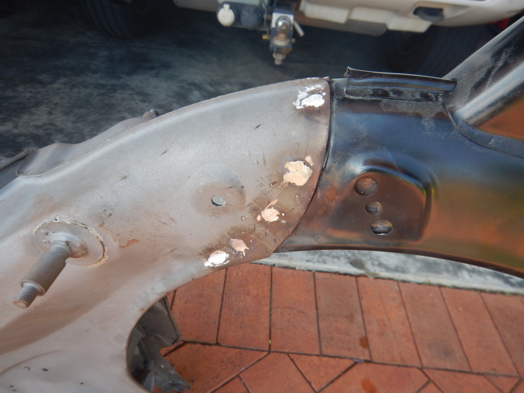 I've also started a little bit of panel beating and body filling where the new rear guard joins to the frame.