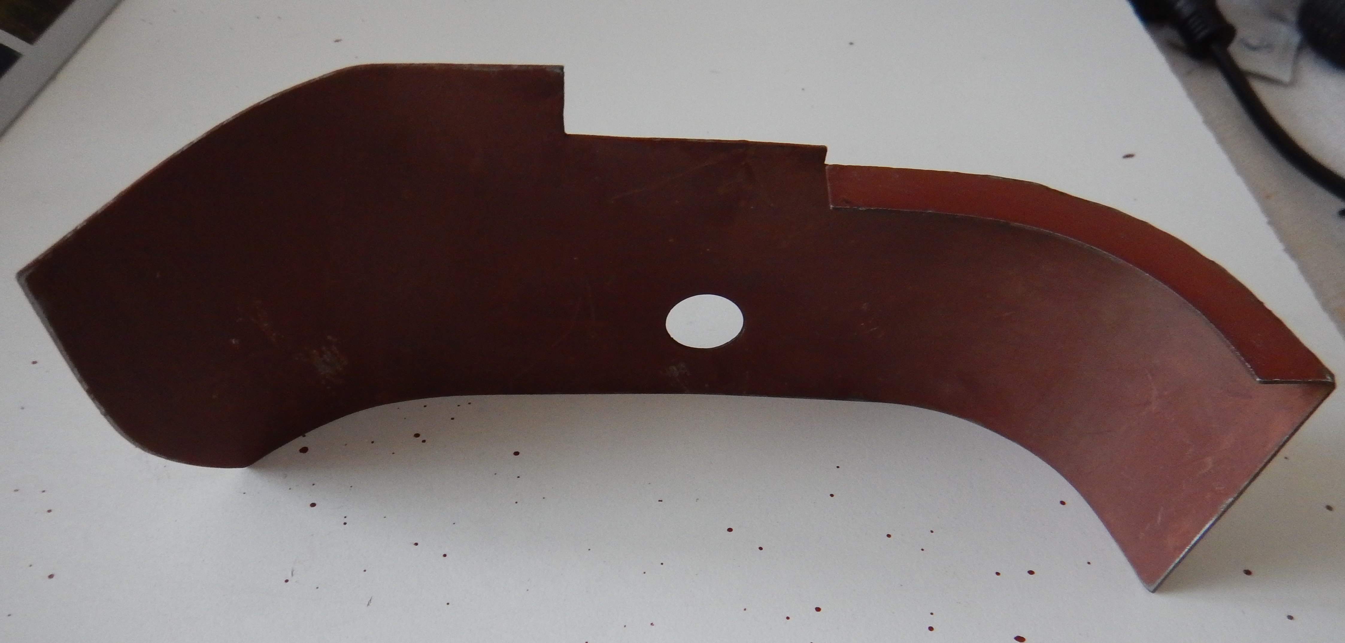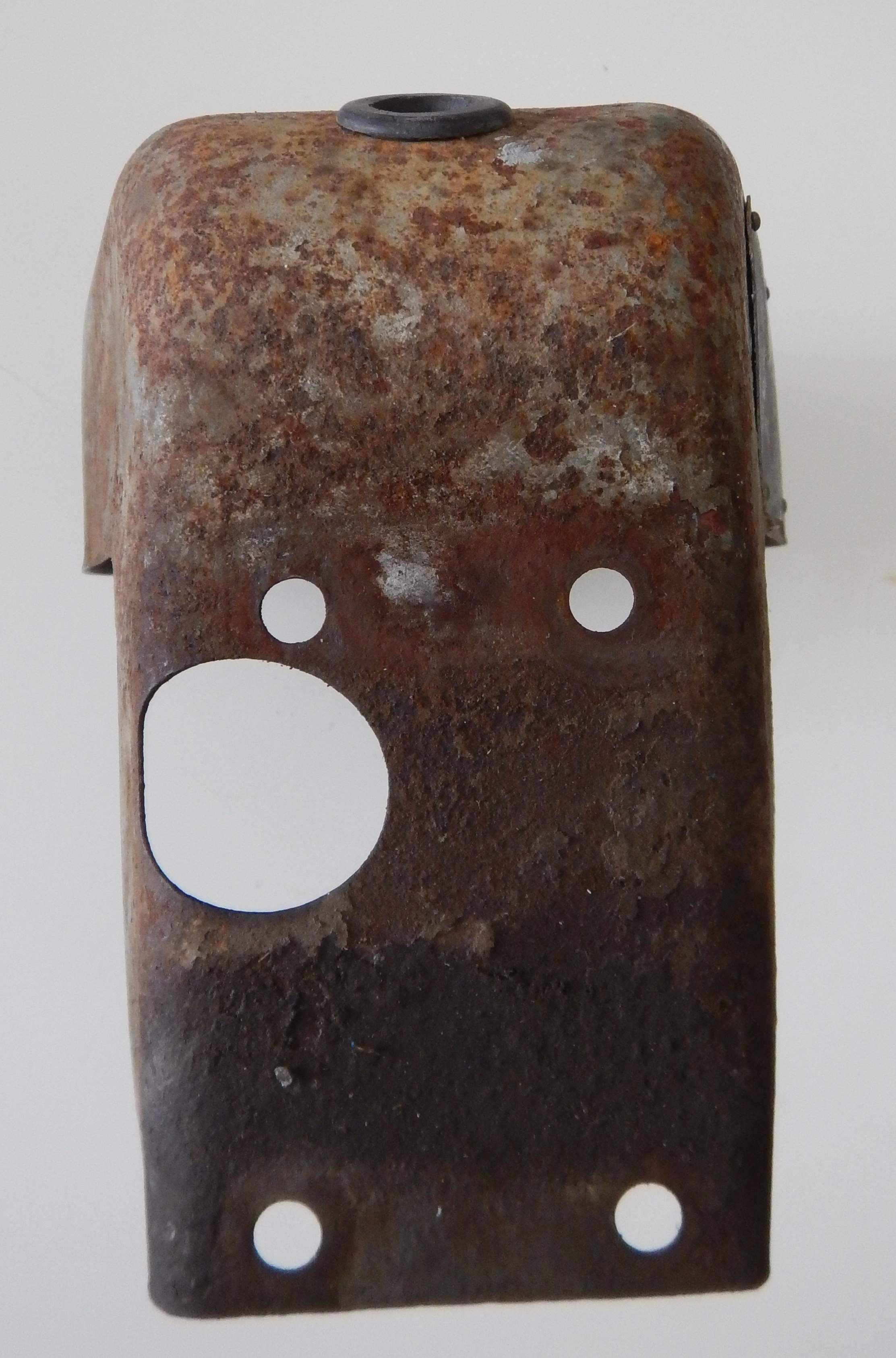 Once again - the main attack was to clean it up with degreaser, followed by soap and water and a plastic scrubbing brush. Then a bit of a clean with the rotary tool and a coat of Red Oxide primer ready for the top coat. Of course the outside took a lot more cleaning than the inside!! Its interesting to not the difference between the internal and external faces. The internal faces are nice - really well preserved - no corrosion, no pitting etc - of course on the outside - lots of pitting, corrosion, a little bit of physical damage. Of course that's exactly what you would expect with all the oil on the inside, and the rain and weather on the outside!! But its interesting to see just how nice the oil keeps the metal. Unfortunately there are no "before" photos for this piece - I pulled it all apart and began work before I decided I was going to create this web site. |