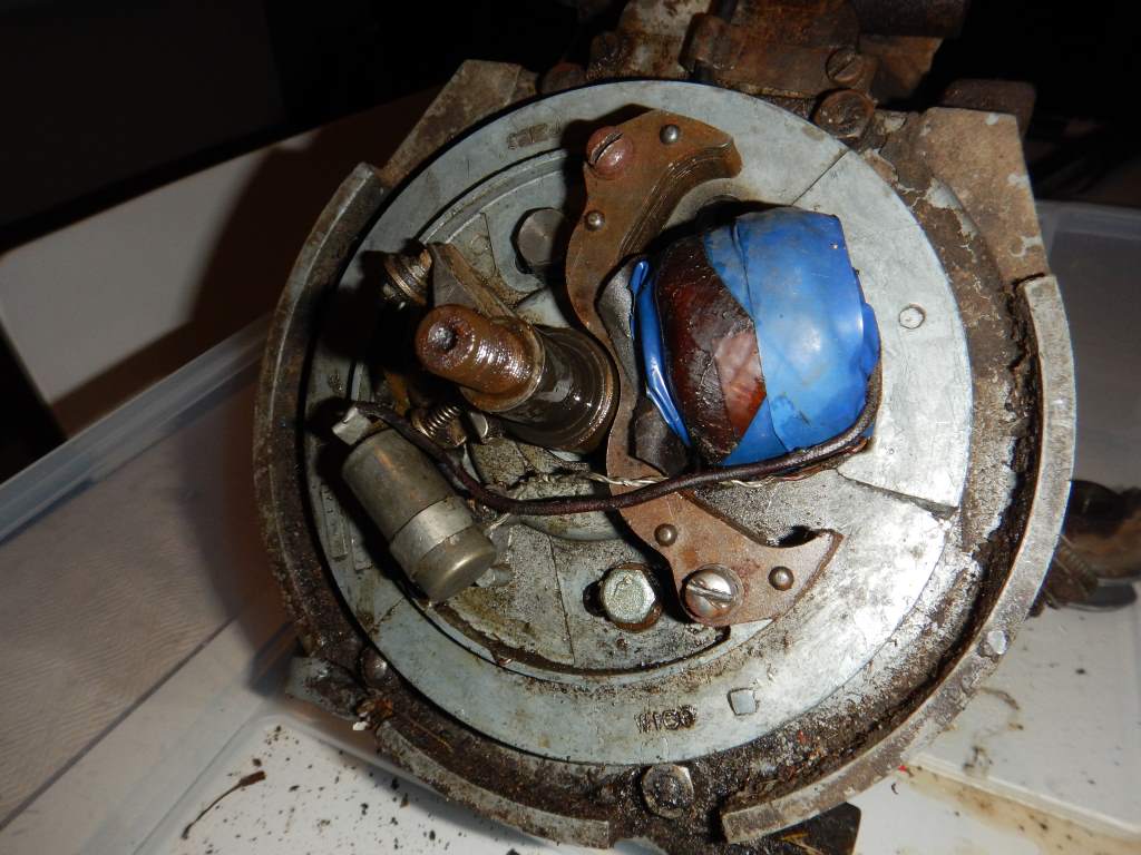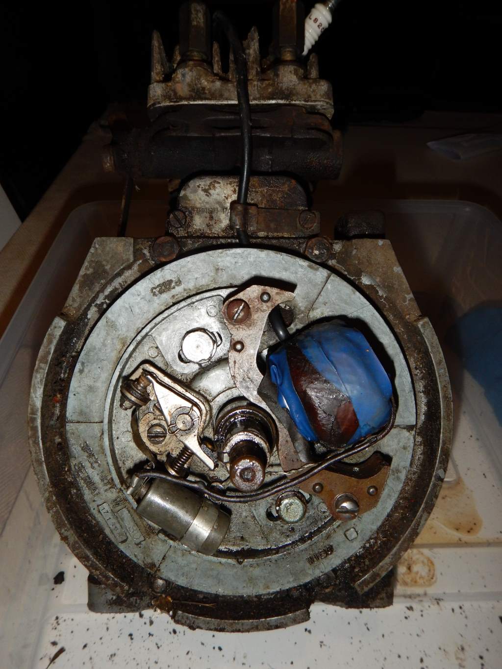 I was all enthused now - so I decided to put in a new set of points (dunno why, the existing ones seemed to be working fine). Took the old ones off, new ones one - nothing, no spark, nothing at all. BUGGER!