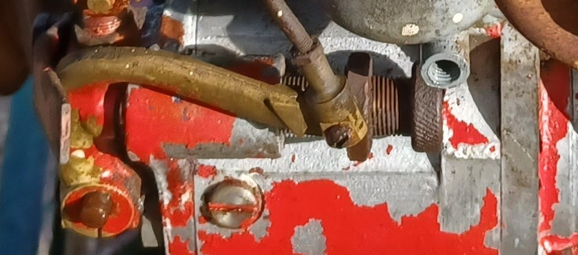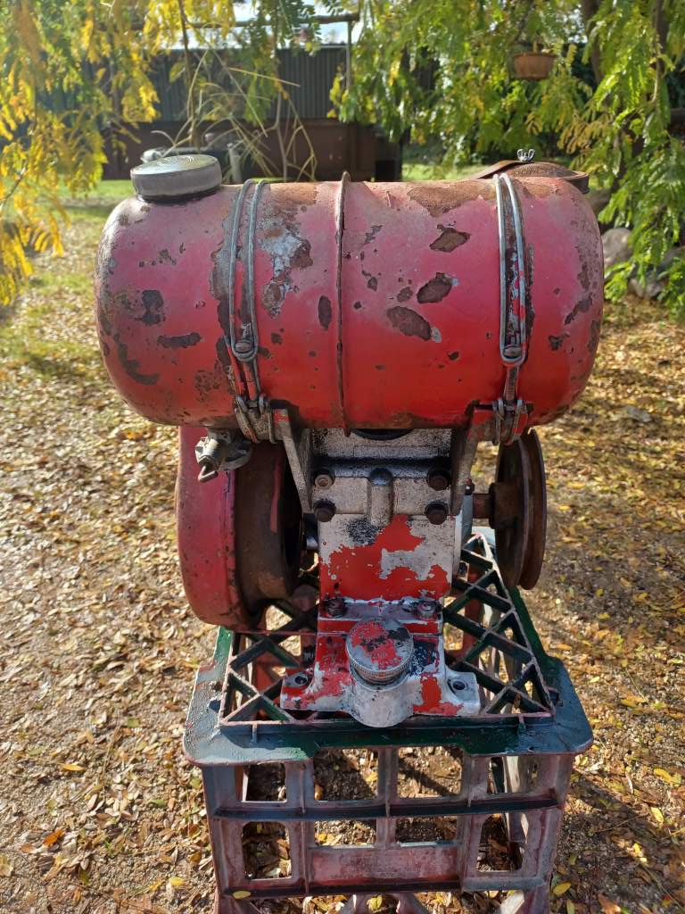 Someone bought this engine new, many years ago - possibly 1960. They used it a little bit, and took good care of it while it was in use. Then, for some reason, they didn't need it any more, and it fell into disuse. So since then it has been sitting in the back of somneone's shed just corroding away externally. SOmeone decided to freshen it up with a thick coat of paint, but with little care or preparation. They maybe used it for some time, but once again it fell into disuse and into the back of perhaps a different shed. Over the years the paint started flaking off and the underlying, exposed metal started to rust. And that brings us to today.