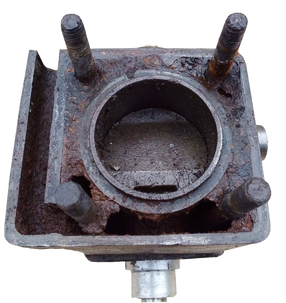 Despite my claims about it being not too difficult to get apart, one part gave me a huge amount of trouble - getting the head off the barrel. I won't bore you with the details of getting it off, but when I did get it off, this is what I found.