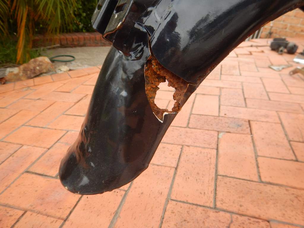 So my fears have been confirmed - the guard is cactus - no way that can be saved. Or at least there is no way I can save that. I'm sure more skillfull people than I could do it, but I can't. For me it seems better to just buy a new guard. I really like to keep things original, but this little bike is nebver going to be original again. The previous owner/s have done a few strange things to it, and Im not going to go to the effort or expense to reverse tehm, so I'm going to have a little bit oif fun with this. I'm not sure what will happen with it yet....but it won't be taken back to original.