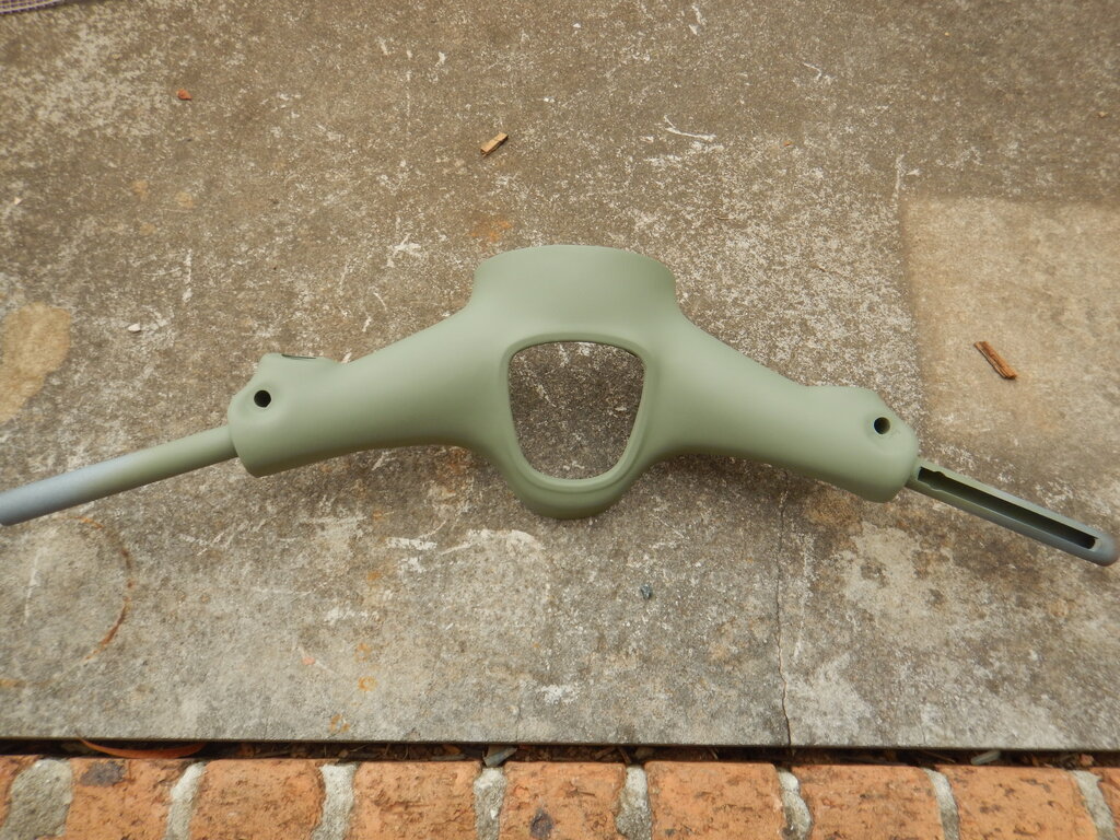 I've begun to turn thius little beast into a Military bike. So it's slowly turning Olive Drab.