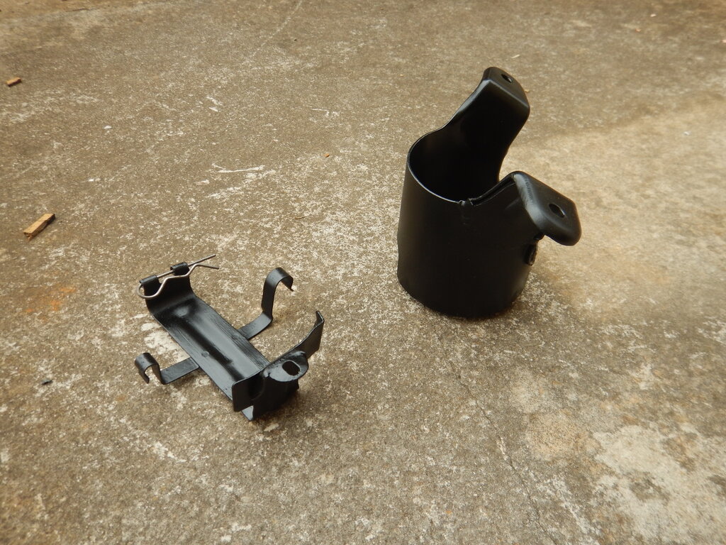 The metal strap that clamps the petrol tank to the petrol tank cover was next. This was in really good condition, but it got pretty much the same treatment as the seat hinge, just in case there was any spots of rust starting around the bolt holes or somewhere else out of sight. So washed, dried, wire brushed, paint stripper, vinegar, baking soda, Wax and Great Remover and thenEtch Primer - and then set aside to dry.