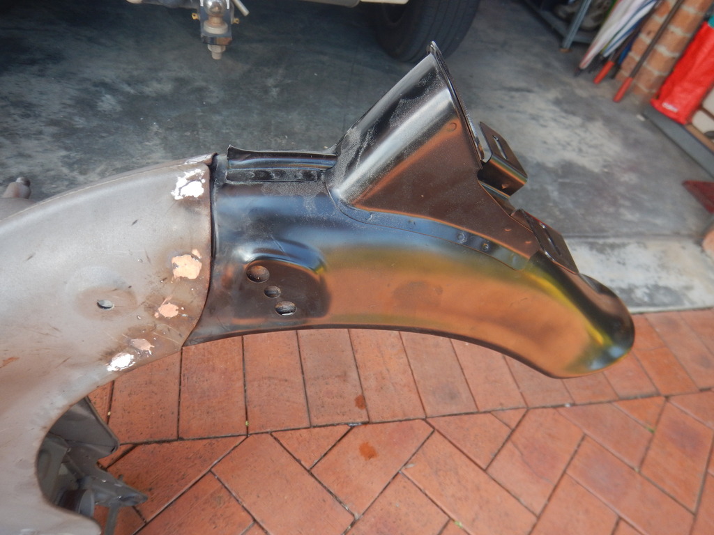 I've also started a little bit of panel beating and body filling where the new rear guard joins to the frame.