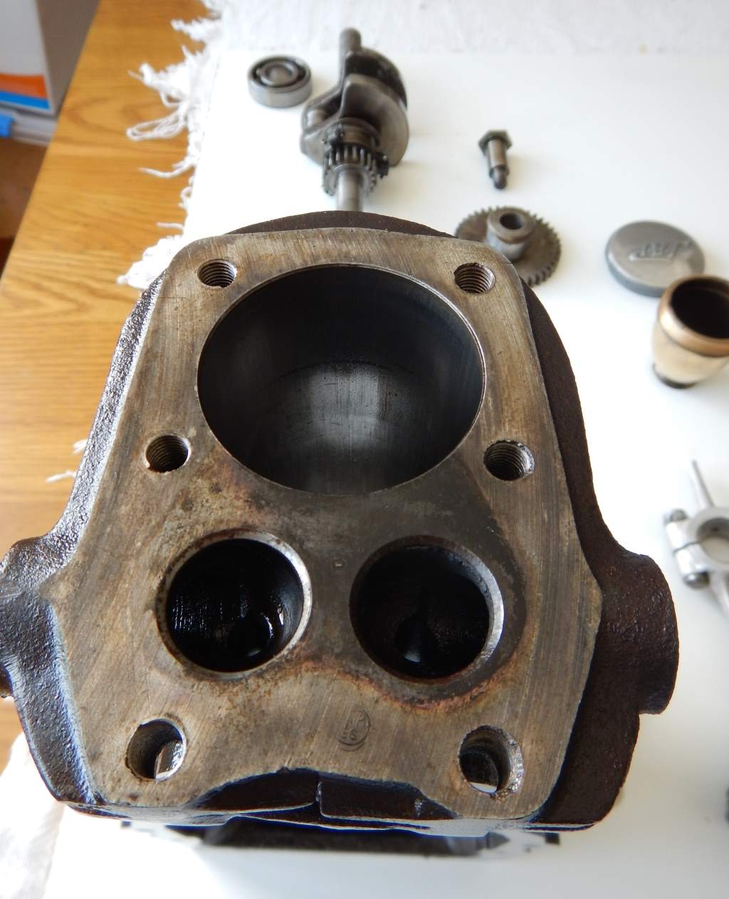 This is the crankcase and barrel/cylinder assembly. It's all one single block of cast iron. Solid as a rock. |