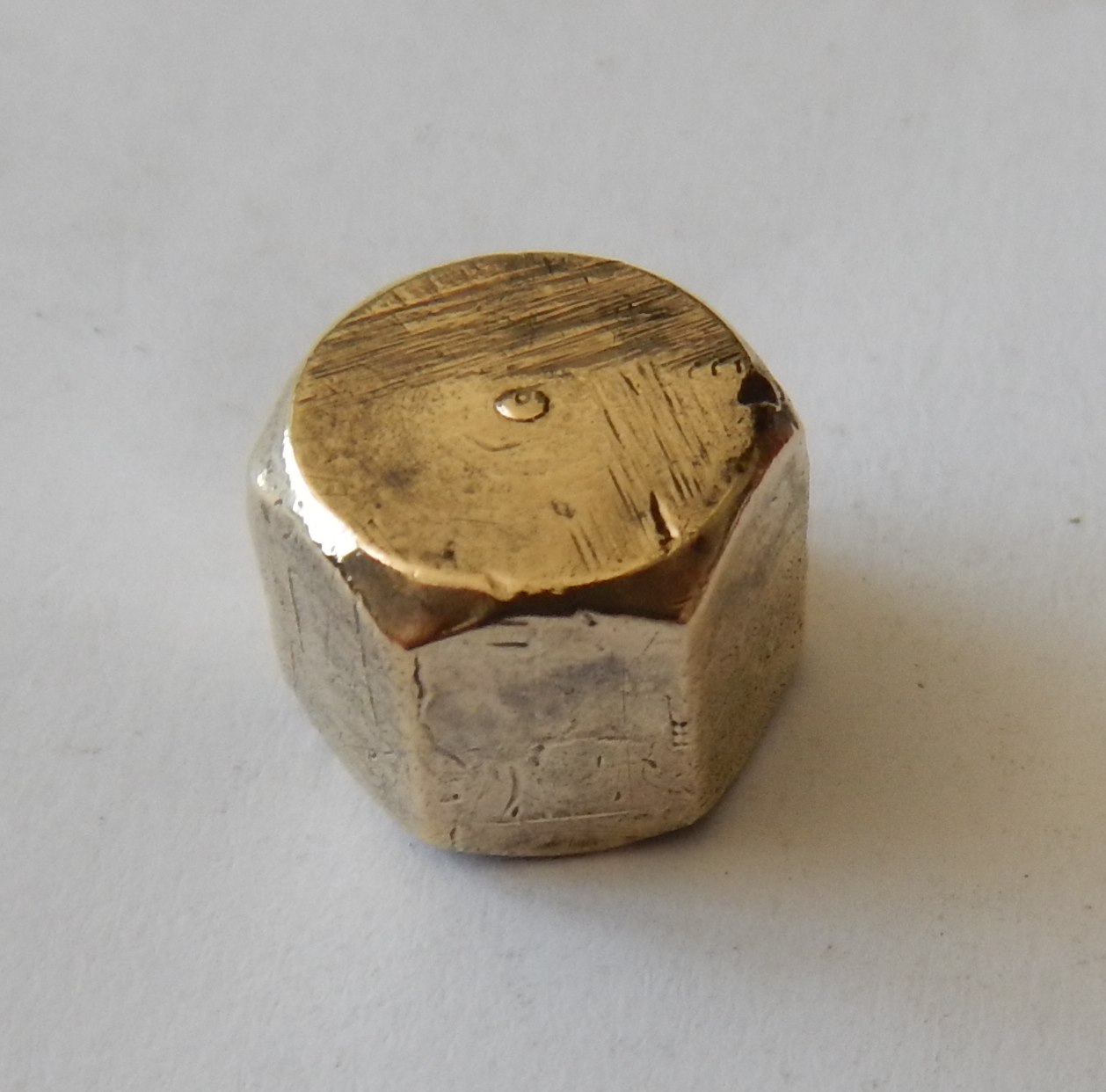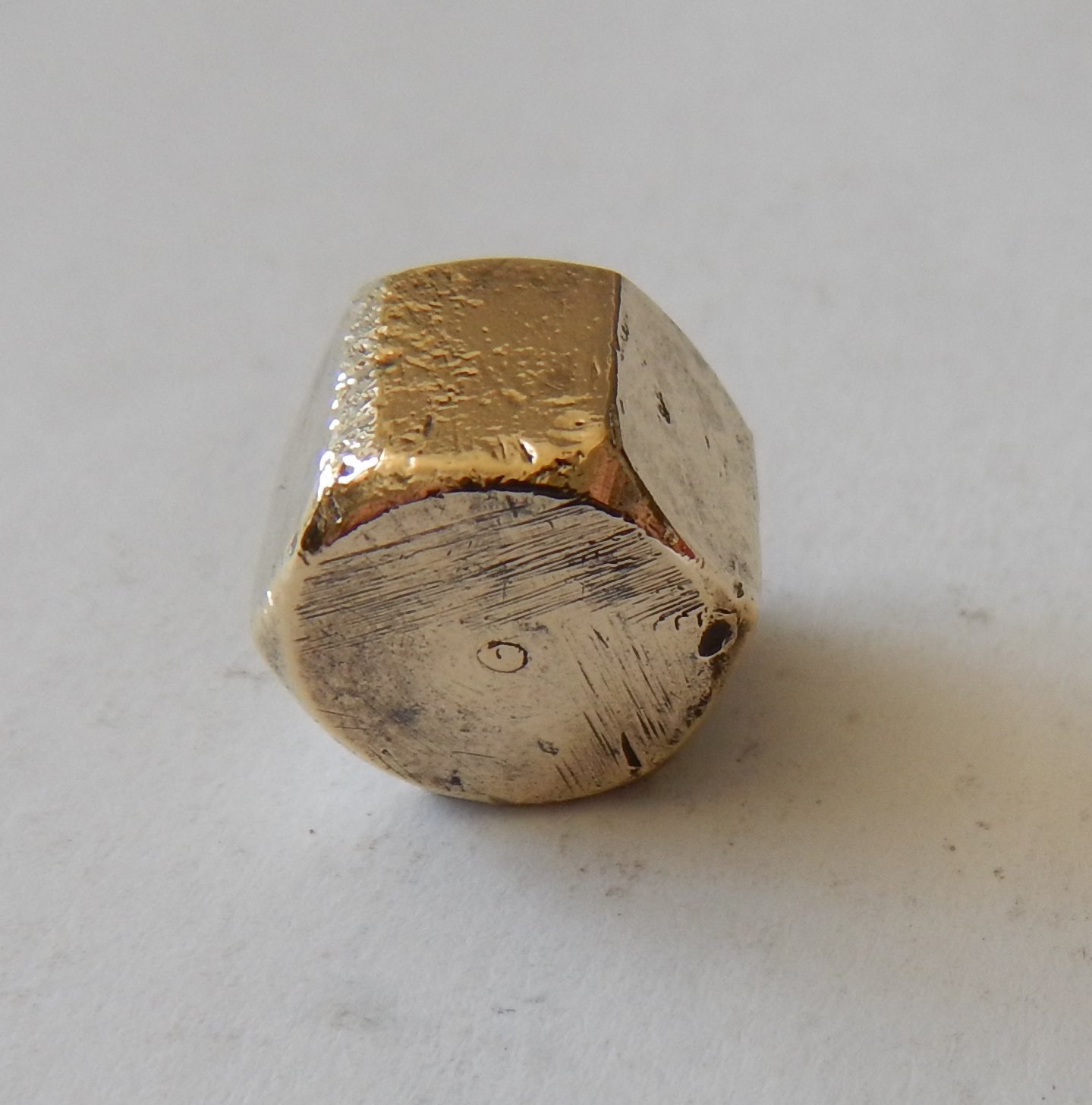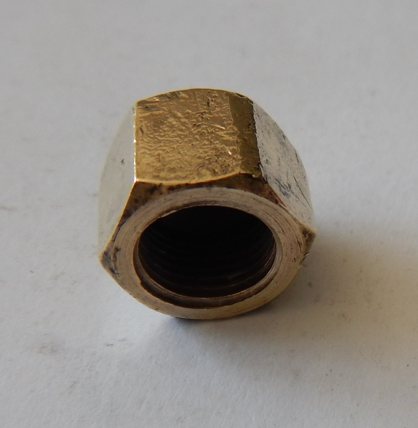 Brass nut that fits over the drain hole on the right hand side of the Engine/Sump Base. > It looks like it's had a lot of spanners on it over the years - lots of little nicks and bumps etc - but that's good news really - it tells me the engine has had lots and lots of oil changes over the years - and I don't know about you - but I think if the only maintenance you ever do to an engine is change the oil every couple of mponths - it will always be good to you And the proof is in the pudding, so to speak - when you examine the insides of this engine, so you see the benefits of regular oil changes. I suspect a lot of the linear gouges you can see were my fault - I cleaned this with a wire brush on my rotary tool - and I think the wire brush was harder than the Brass Nut, so it gouged out those lines you can see. I have now ordered a bunch of little brass wire wheels so it won't happen again. |
