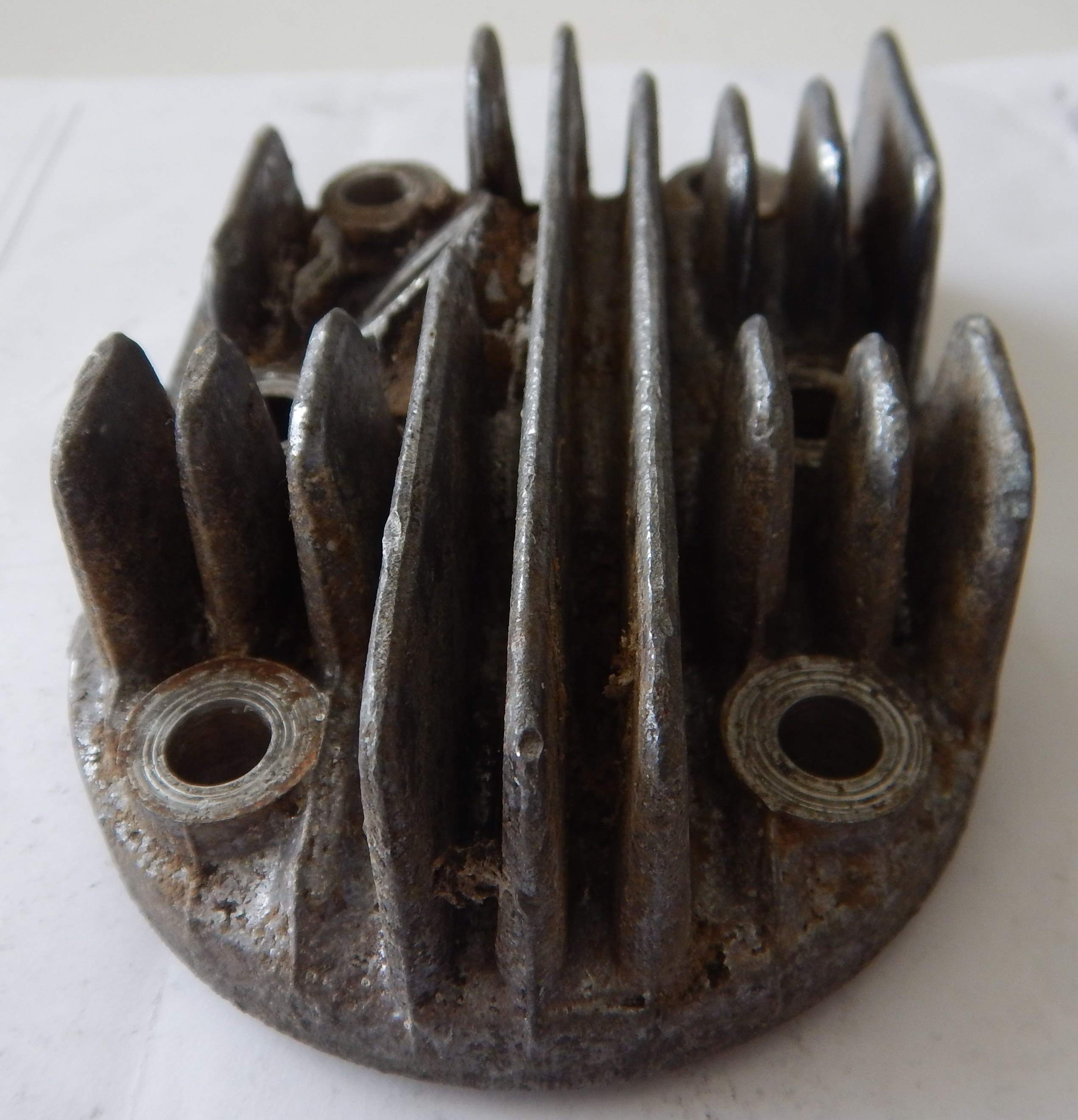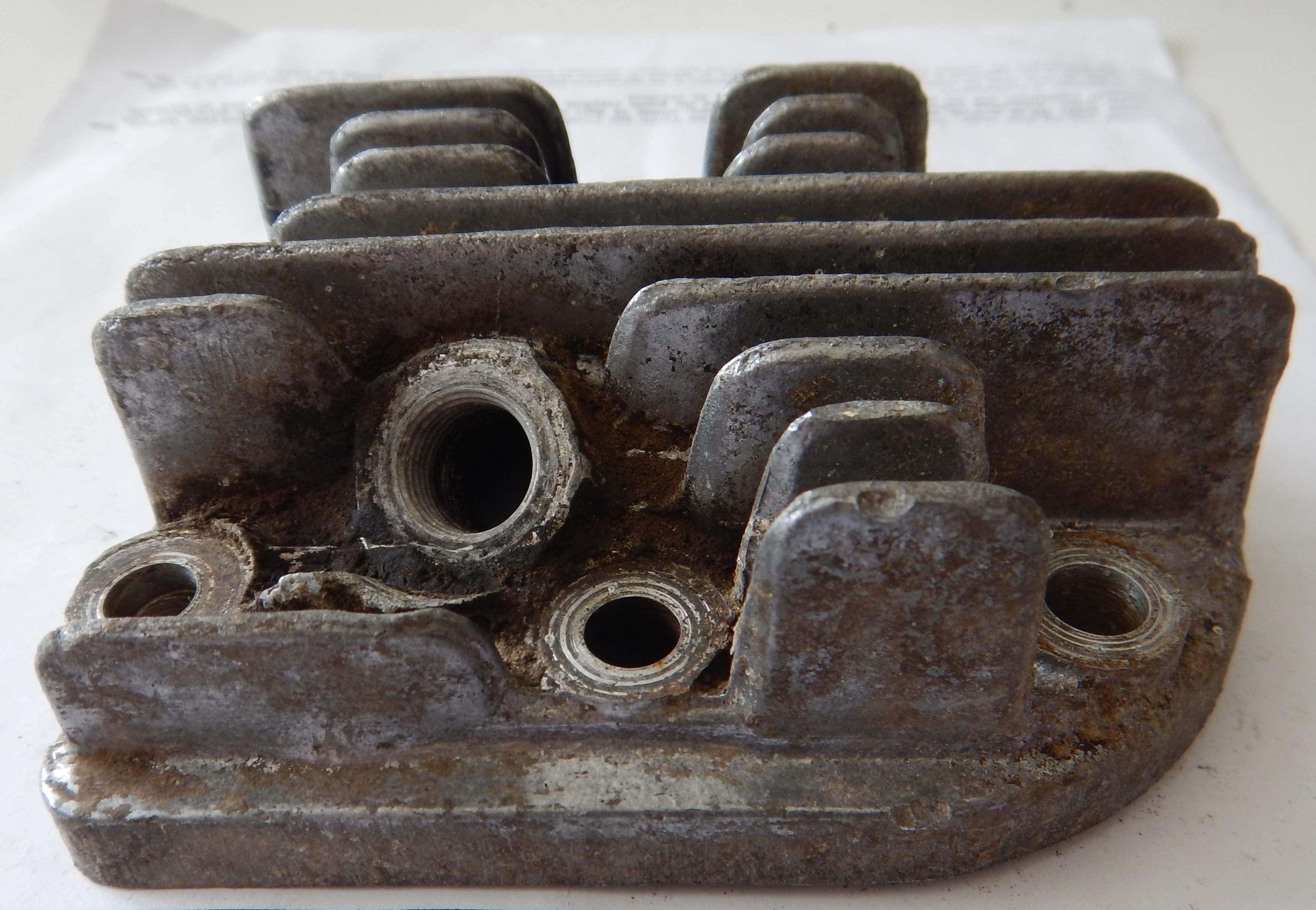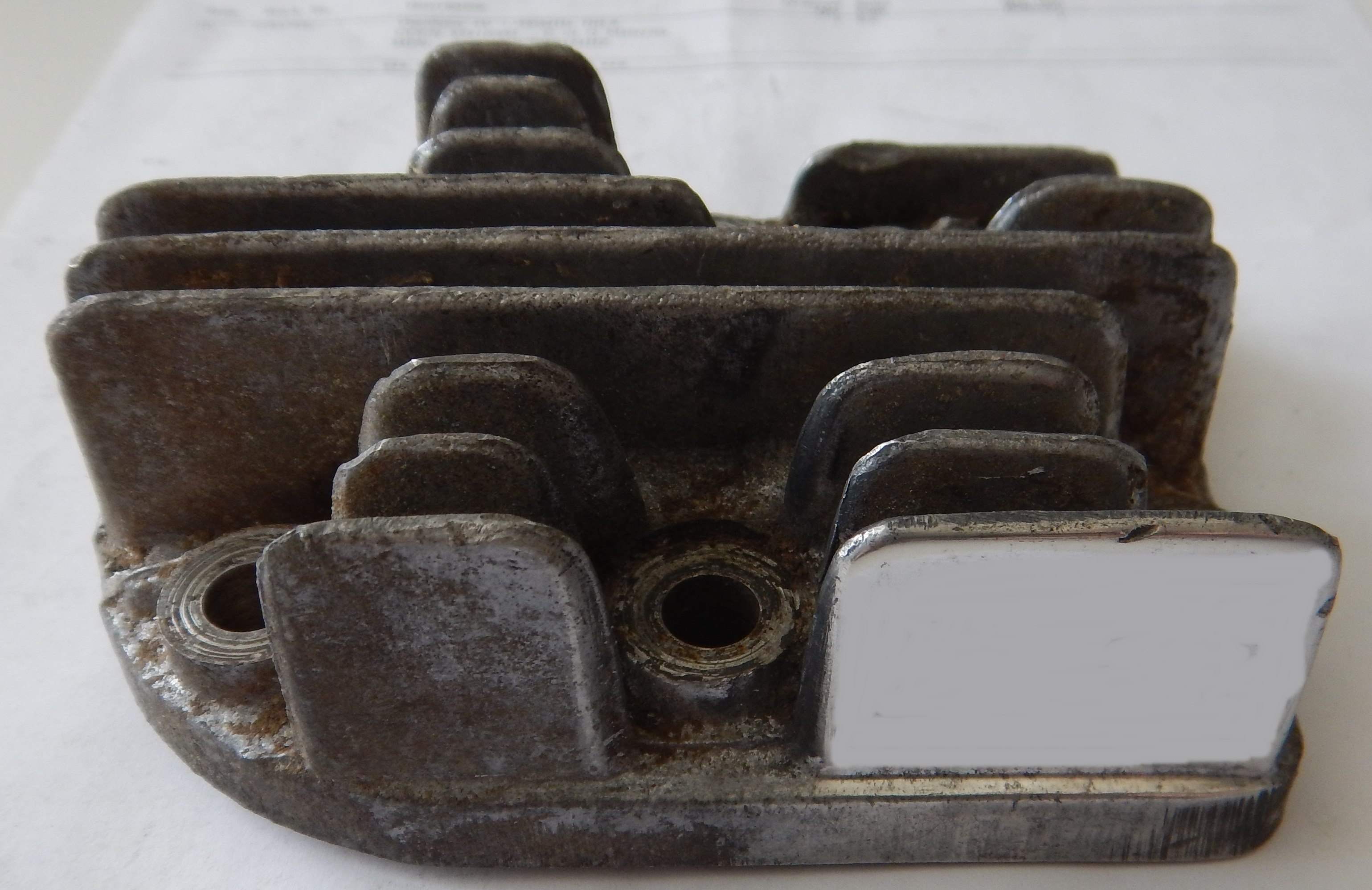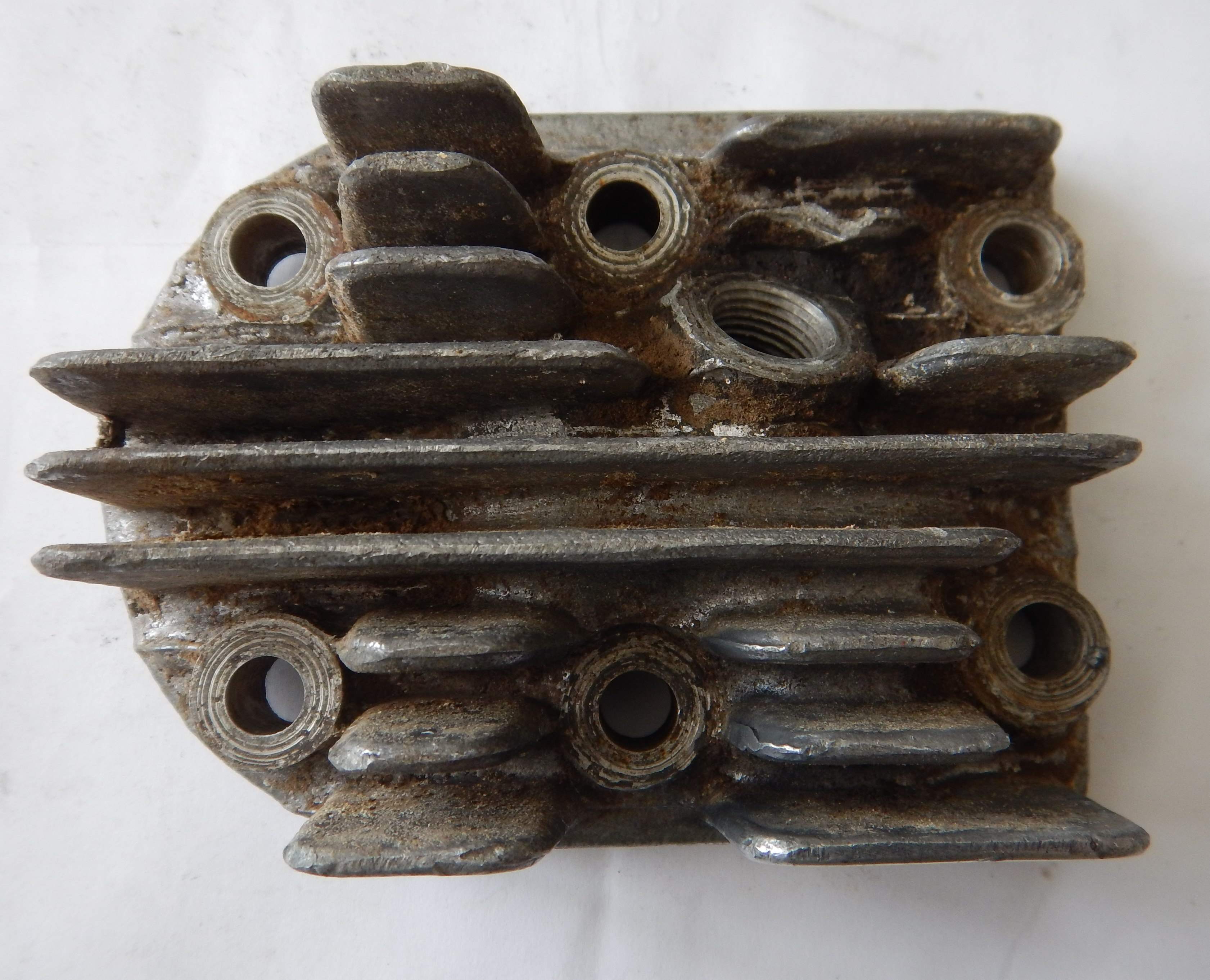 As you can see from the photos below - I had started to clean this up prior to taking the "Before" photos. I just wanted to see what it would come up like. The process for cleaning thios was - Degreaser - Degreaser - More Degreaser - Wash in soapy water and get it as clean as I possibly could. Then, start of with coarse sandpaper - which for me was about 360 grit Wet & Dry - sand sand and sand. Then 400 grit Wet & Dry - sand, sand and sand. Then 600 grit Wet & Dry - sand, sand and sand. Then 800 grit Wet & Dry - sand, sand and sand. Then 1000 grit Wet & Dry - sand, sand and sand. Then 1200 grit Wet & Dry - sand, sand and sand - and by this time it should be starting to look really good. Then out with the rotary tool and the AutoSol (Metal Polish) and shine it up with that - it will come up like a mirror - of course if you don't want it to have a mirror shine you need to go this far. As for the combusion chamber and the carbon - well - how does one do that - it seems like someone had had the head off and tried to decarbon it with a screwdriver before I got at it. I'm not sure how good an indea that is - but before I start criticizing - I should probably let you know that I don't really know of anything better - some things I've read are Diesel, |