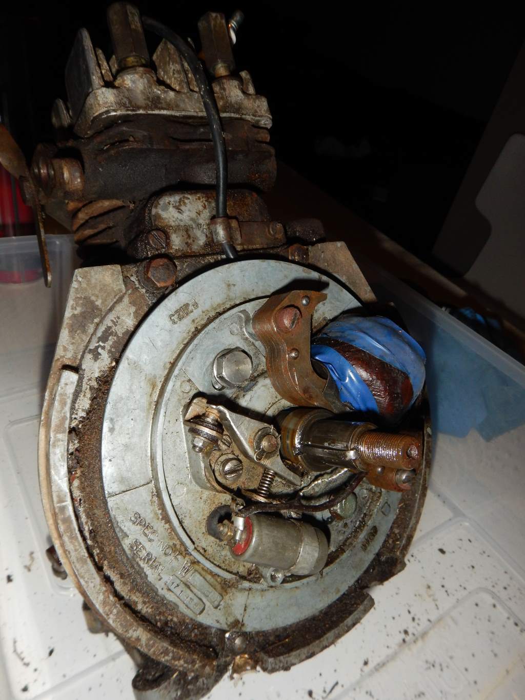 I was all enthused now - so I decided to put in a new set of points (dunno why, the existing ones seemed to be working fine). Took the old ones off, new ones one - nothing, no spark, nothing at all. BUGGER!