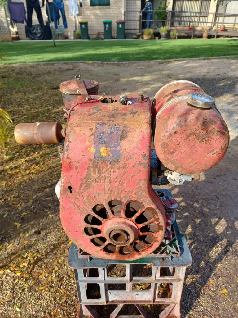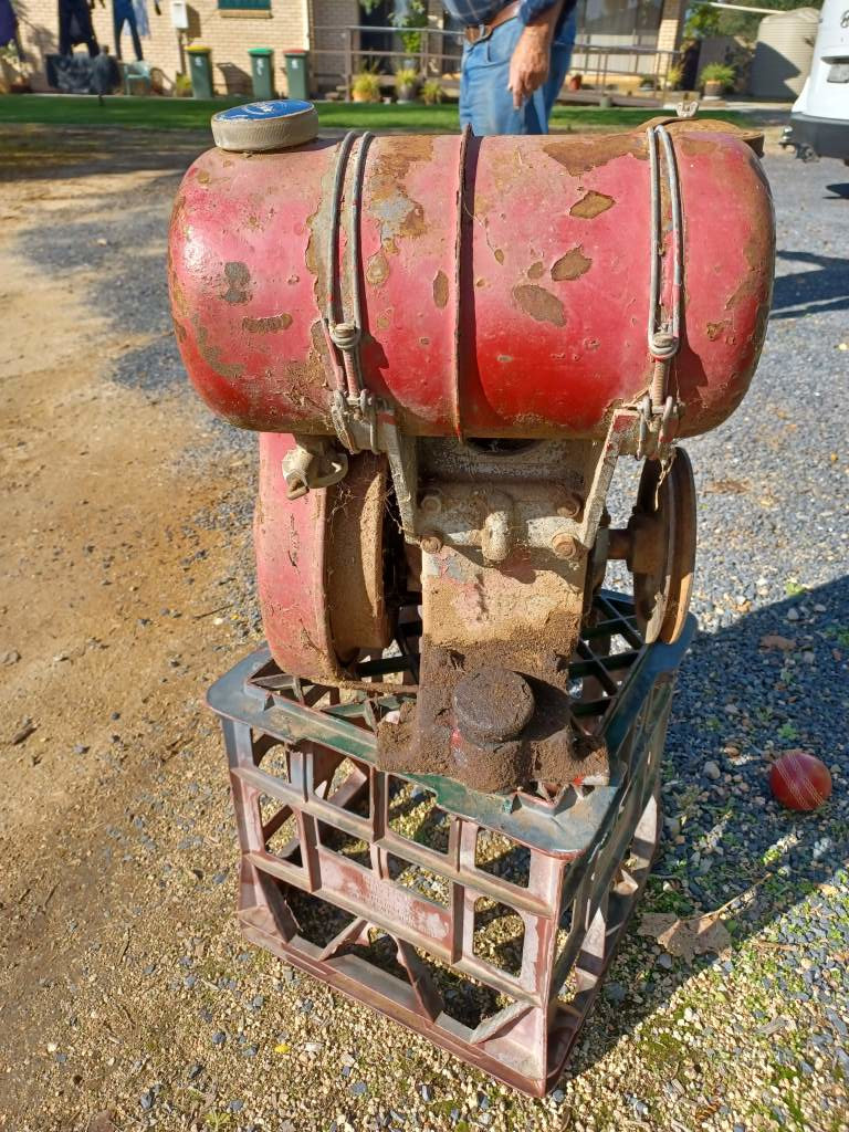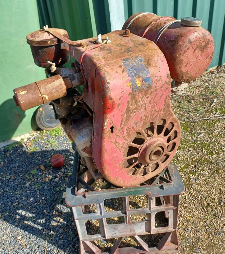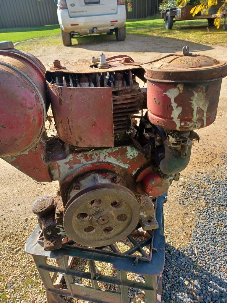 Someone bought this engine new, many years ago - possibly 1960. They used it a little bit, and took good care of it while it was in use. Then, for some reason, they didn't need it any more, and it fell into disuse. So since then it has been sitting in the back of somneone's shed just corroding away externally. SOmeone decided to freshen it up with a thick coat of paint, but with little care or preparation. They maybe used it for some time, but once again it fell into disuse and into the back of perhaps a different shed. Over the years the paint started flaking off and the underlying, exposed metal started to rust. And that brings us to today.