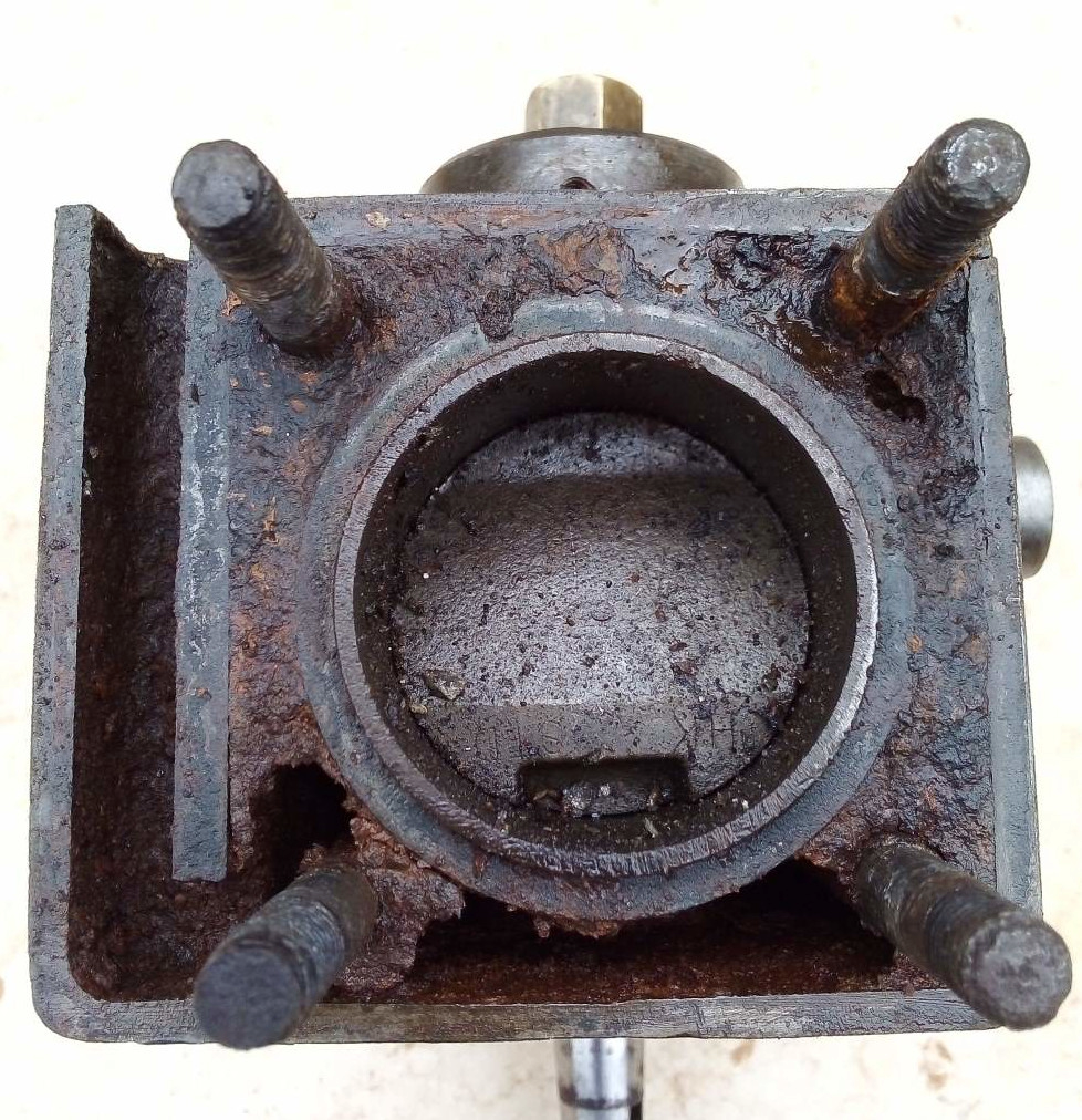 And I've just realised - the head gasket itself is missing. Above on this page I mentioned I wouldn't bore you with the details of getting the Head and the Barrel Separated. Well now I am going to. They were absolutely cemented together - rock solid - nothing I could do would even budge them, In the end I gave up (unusual for me - usually I keep going and break it!) and took it to an engine rebuild shop. As it turns out, they just did what I was going to do, bash the crap out of it with a hammer. When I got it back I could see the hammer marks all over it. But at last the head was off. But now I realise I never got the head gasket back, it must have been trashed in their delicate, almost surgical like precision procedure. To be fair though, I am guessing the last person who took the head off (perhaps the Seagull Factory) coated the gasket with some kind of RTV/Silicone sealant, and over the years it just cemented together.