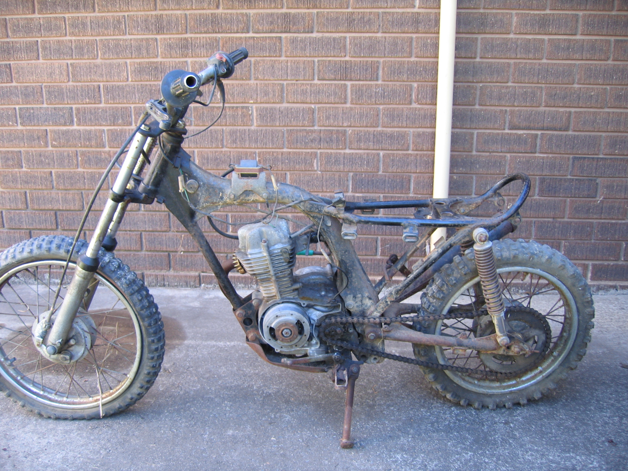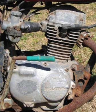 You can see from the photo that it is fairly rough. I know for a fact it wont start, and in fact the kick starter won't even kick through its whole range of arc, so things insid ethe cylinder sound a bit dodgy, ie seized.